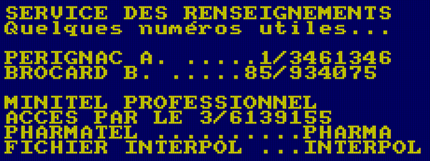 | 3 | MME TRICOT | Accessible | Avoir entendu le Témoignage 1 | Avoir entendu le Témoignage 2 | Fouille + Action sur MME TRICOT |